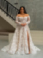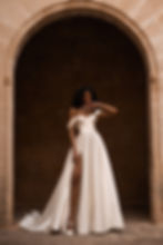 Traditionally, wedding dresses are often imagined in the classic “princess” A-line shape. For this reason, the silhouette exudes a timeless elegance that many brides seek. The silhouette is also flattering for most body shapes with the cinched-in waist and volume in the skirt which highlights the feminine form. A-line wedding dresses continue to be highly sought-after, with styling which ranges from classic and minimalist like our Rhodes gown, to modern and architectural like our Odette gown, or quintessential lace princess like our Sera gown.